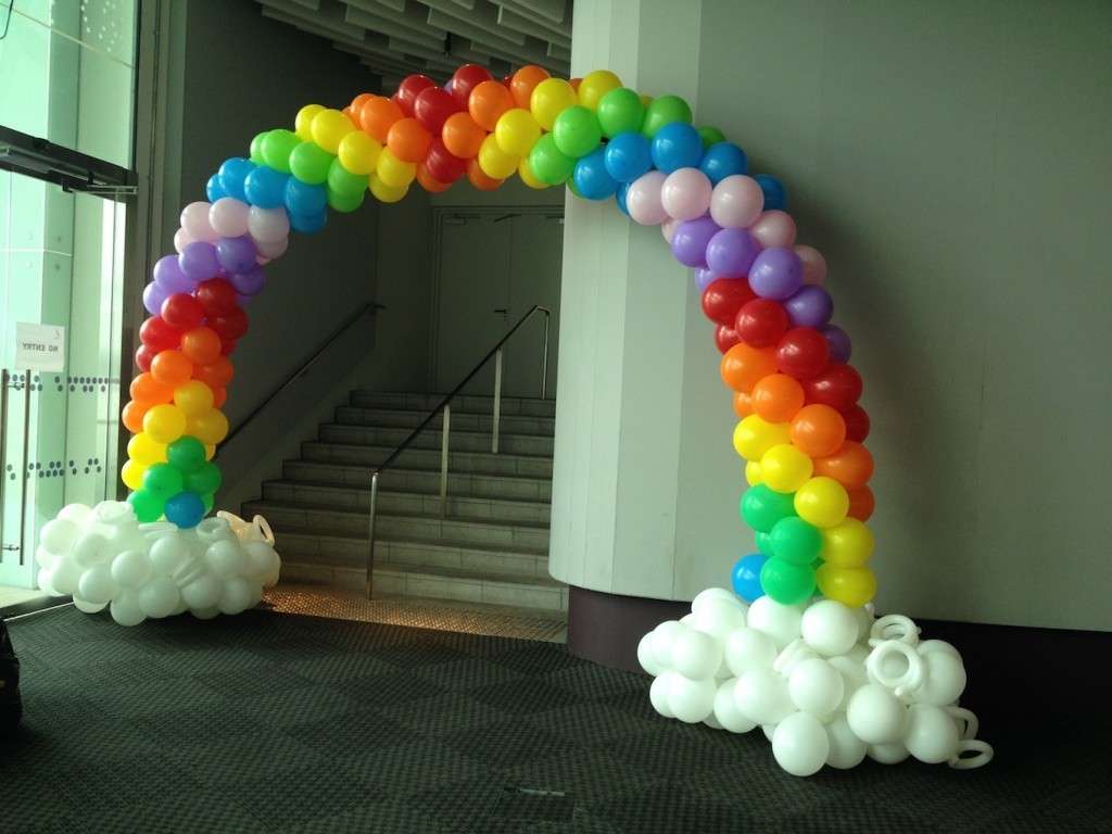 - Если же потолок в актовом зале высокий, то из тех же самых разноцветных шаров можно соорудить арки.