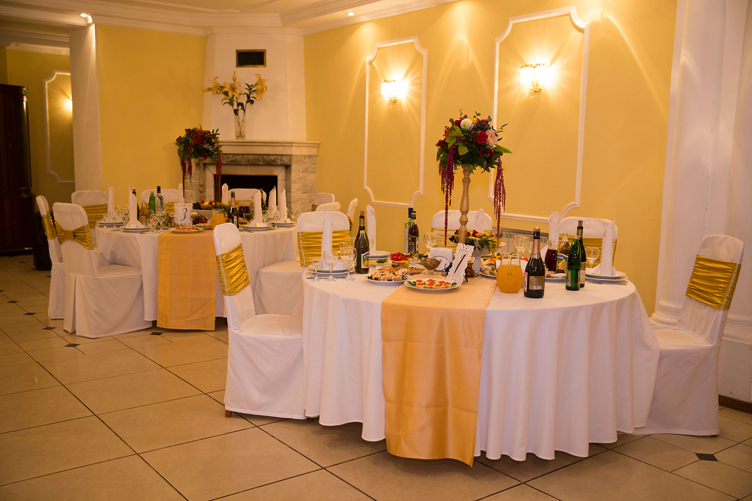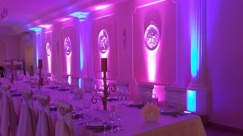 - Не беда, что бюджет на банкетный зал невелик. Выбрав небольшое помещение, можно увеличить его визуальный размер при помощи декораций и игры цвета.