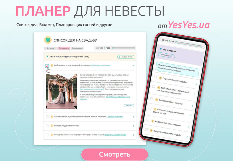позаботьтесь о документах, деньгах, связи – опять же, если праздник будет проходить в чужом городе или стране, вам необходимо собираться не только на самый важный праздник в жизни, но и в путешествие. Проследите за наличием паспортов, визы (если она необходима), состоянием банковских карт, наличием сим-карт, роуминга, Интернета для коммуникации с подрядчиками вне Украины.