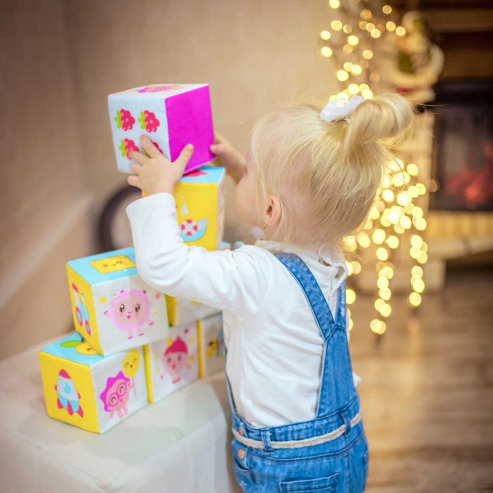 Фото подарка, который можно подарить на день рождения на год девочке: развивающий мягкий кубик