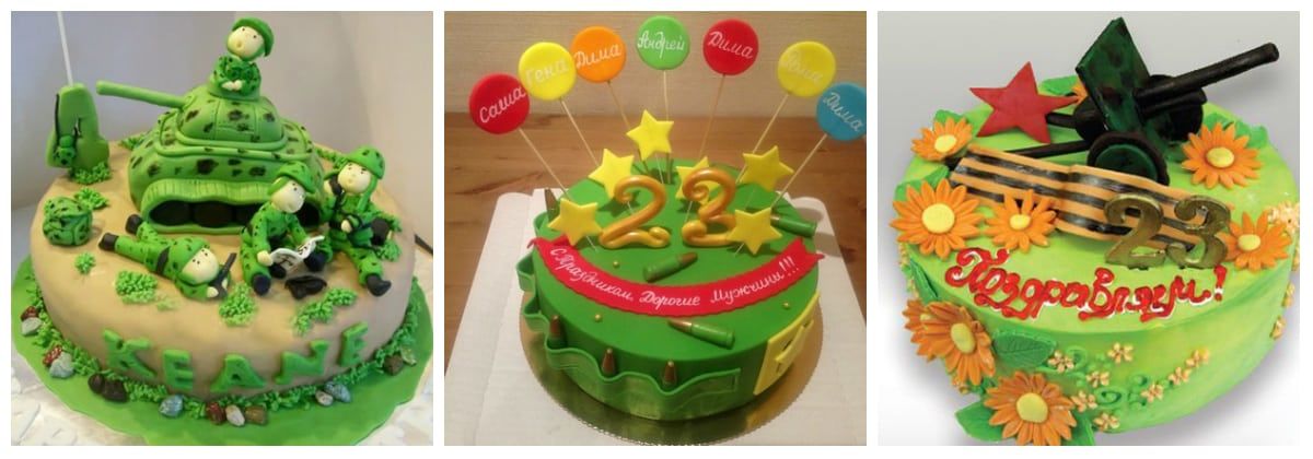 Торт можно испечь самостоятельно или заказать в кондитерской в любом оформлении. Для празднования 23 февраля подойдут торты в виде танков, военных машин или с выписанным кремовым поздравлением, которые помогут создать уютную атмосферу чаепития.