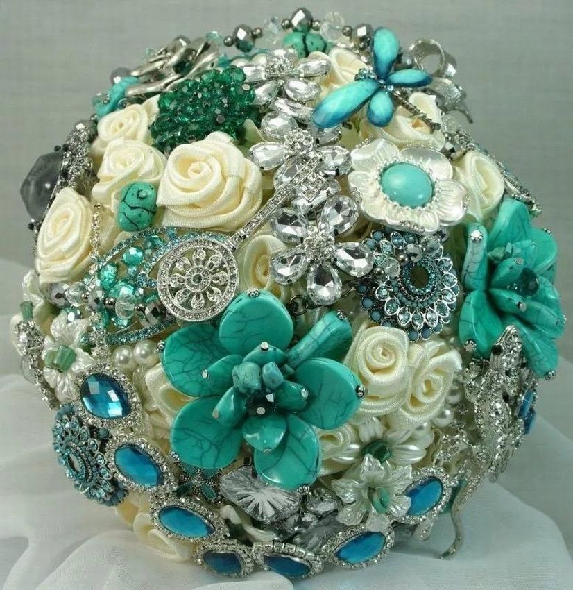 Бирюзовая оригинальная подача мастерски изготовленного букетика.