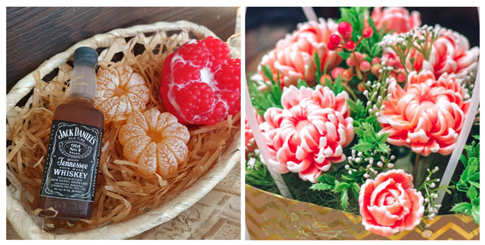 Практически все сказанное выше про мыло ручной работы можно сказать и про ароматические свечи ручной работы. Один из трендов – изготовление эко-свечей из вощины, мастер-классы по изготовлению которых можно легко найти на YouTube. Вощина – это пласт натурального воска, формованного под соты – он приятный, натуральный, что особенно нравится современным потребителям, и приятный на ощупь. Такие свечи также можно делать ароматизированными, если при скатывании в рулетик, завернуть в них травы и эфирные масла. Но даже если этого не сделать, то такие свечи будут дивно пахнуть медом. Поэтому будет здорово, если в подарочном наборе вы, например, совместите их с баночкой вкусного мёда!