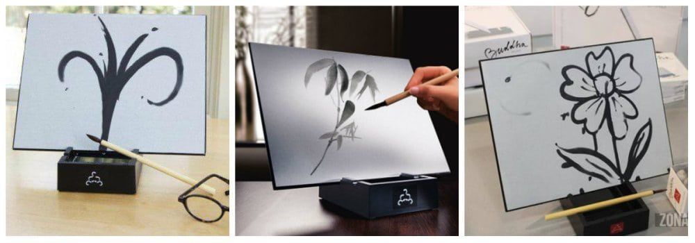 Планшет для рисования водой — это настоящее волшебство, которое таится в специальном покрытии пластины и бамбуковой кисточке. Для работы с ним нужно погрузить кисточку в воду и нанести рисунок, лишняя вода будет стекать в подставку. Использовать такой планшет можно неограниченное количество раз, ведь шедевр испаряется уже через 5 минут! Подробнее>>