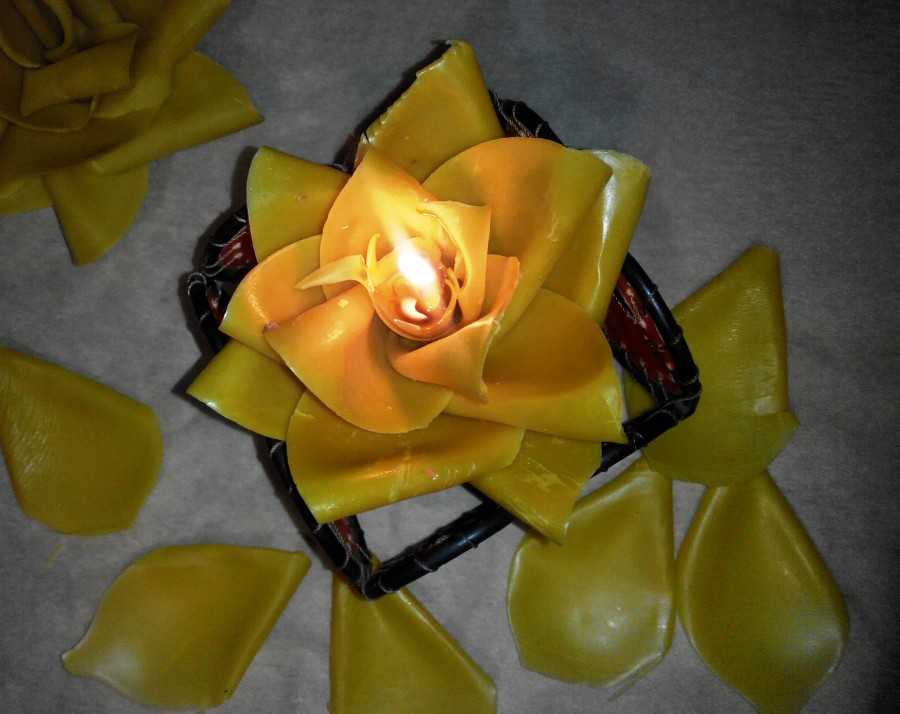 Небольшая свеча в виде розочки, сделанная своими руками