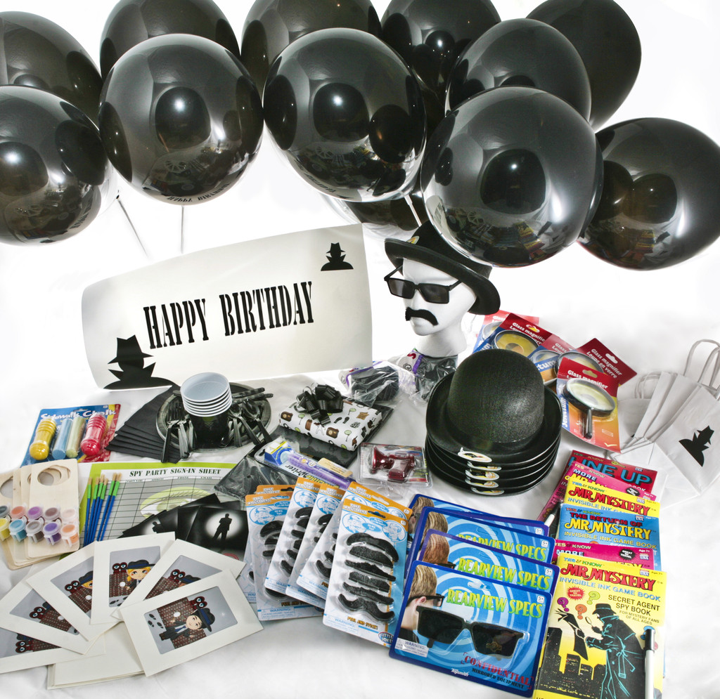 Перед днем рождения также приготовьте маскировочные элементы наряда шпионов: шляпы, очки, усы, брови, парики и прочие необходимые для этого вещи. Для каждого шпиона можно подготовить секретный пакет, в котором будет маскировочный наряд, именной бейдж, а также секретный инструментарий: набор для шифрования, лупа, блокнот, ручка и т.д. На бейджике укажите шпионское имя, возраст, цвет волос, глаз. При встрече гостей, после предъявления спец. пропуска, можно снять отпечатки пальцев на бейджики.
