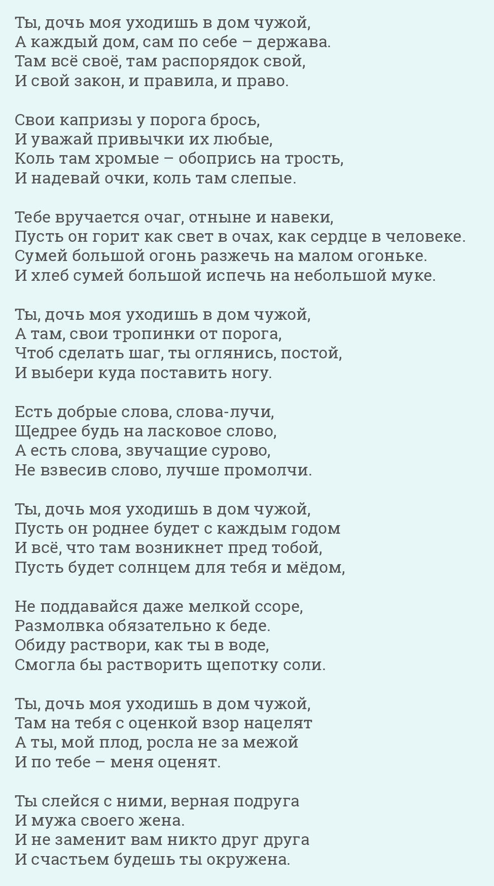 А эти стихи — некое наставление молодой невесте от её мамы: