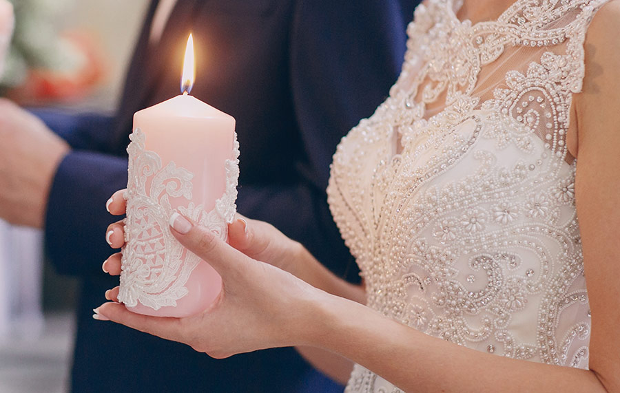 - следующей зажигает свою свечку мать жениха, приветствует невестку, принимая ее в свою семью;