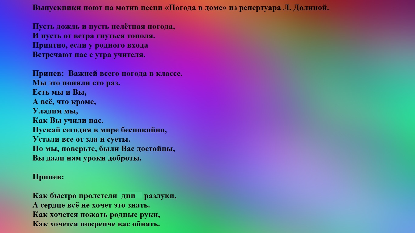 Ведущий: Бывшие ученики подготовили песню классному руководителю.