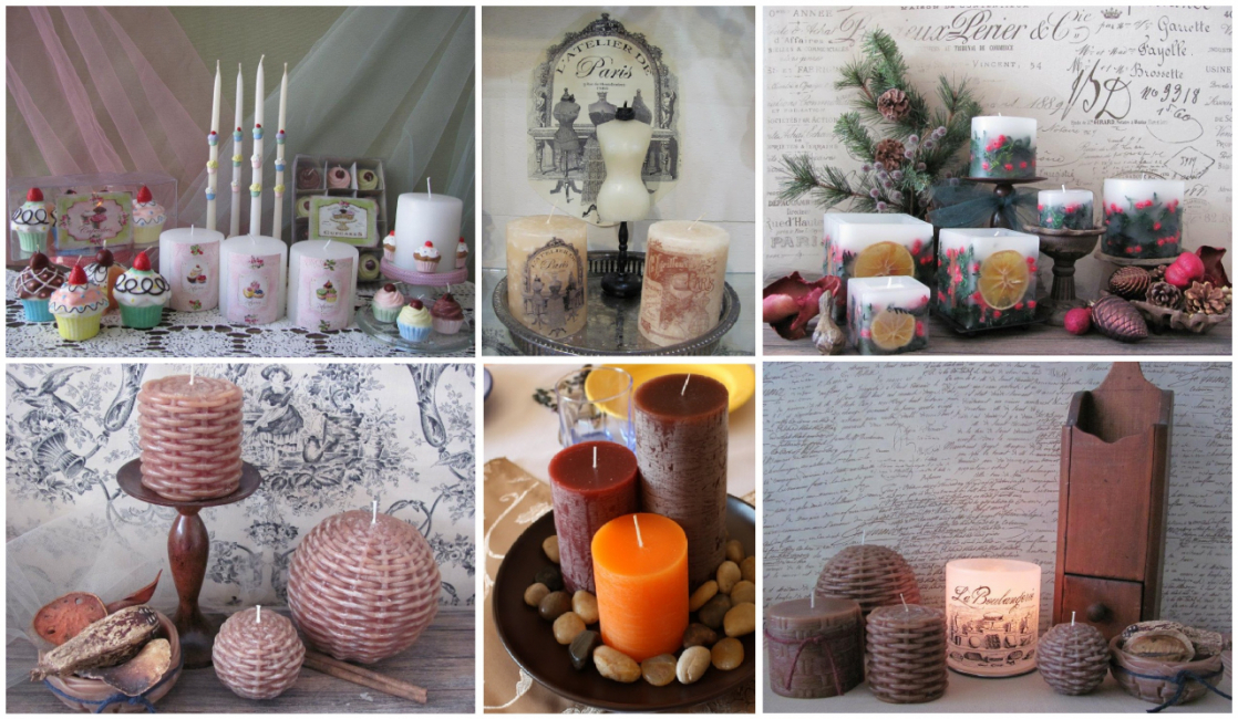 декоративные свечи — продаются наборами для творчества, можно даже не думать о том, как сделать самостоятельно, поскольку все уже написано в инструкции.
