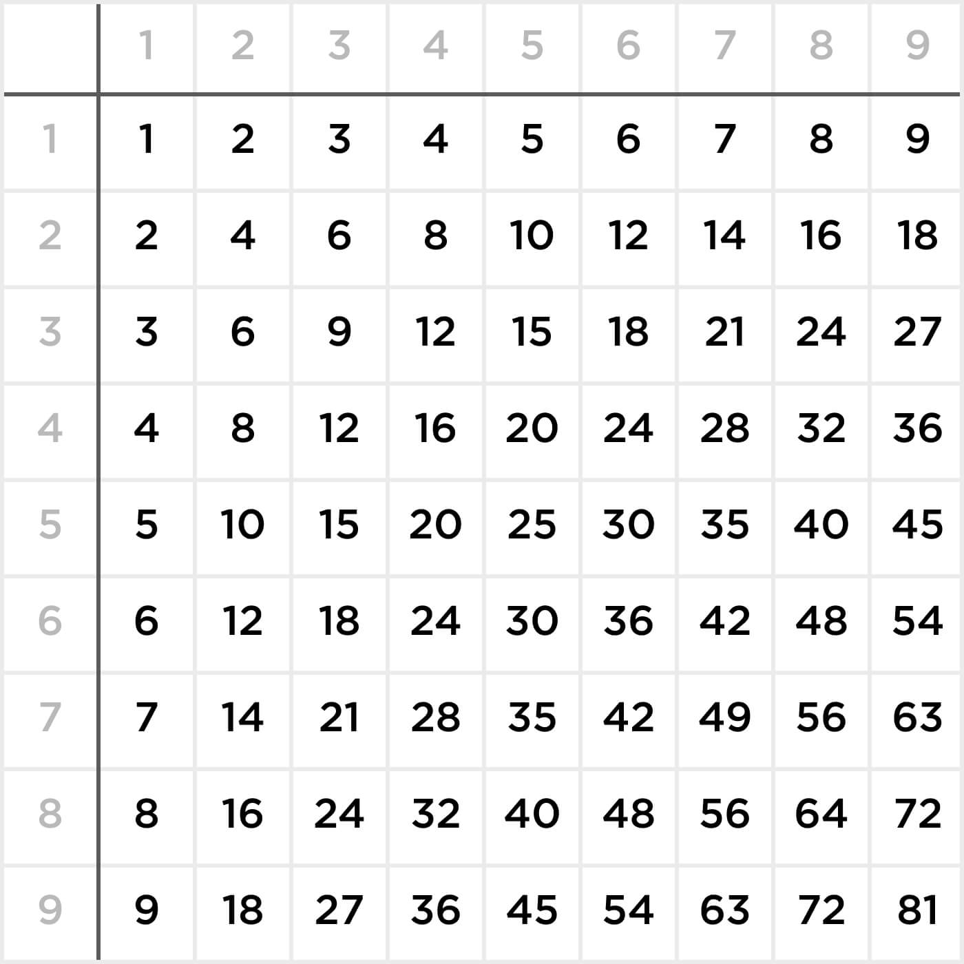 Чтобы научиться быстро умножать любые числа в уме (кроме совсем уж космических), нужно идеально умножать однозначные числа, то есть знать таблицу умножения.