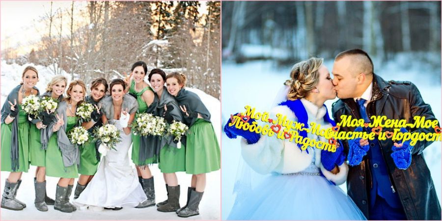 - Ограничения в выборе одежды. Нужно признать, что зимой не так много нарядов можно выбрать. Кроме того, для фотосессии на улице дополнительно понадобятся теплые вещи, например, меховая накидка или шубка, зимние сапожки, а то и валенки на случай, если свадьба планируется в русском стиле. Все это требует дополнительных расходов.