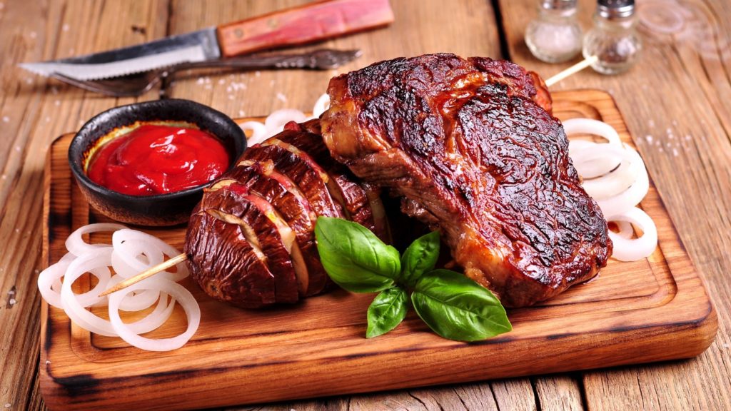 Мясо – универсальный продукт, который прекрасно «дружит» со многими продуктами. Оно любит соседство свежих и тушеных овощей, особенно без ума от спелых томатов. Нравится ему и фрукты с ягодами, а также цитрусовые: этот необычный союз может быть весьма удачным. Например, стейк под клюквенной заправкой или шашлык с апельсиновой подливой – это ведь просто пальчики оближешь! Любит мясо и сладость меда, и остроту чеснока с перцем чили. Неплохо уживается оно с молочными продуктами: сливками, сметаной, йогуртом. К примеру, нежные тефтели под сливочным соусом с чесночком и укропом, вкуснятина!