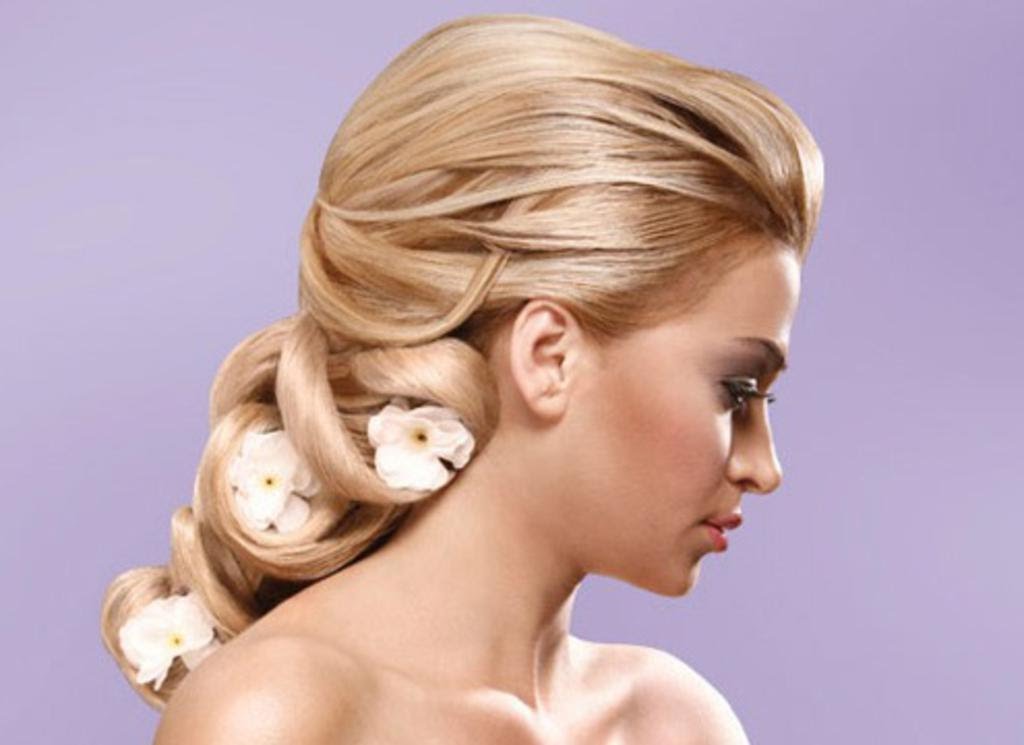 Придать образу эксклюзивности можно украсив причёску композициями из живых цветов, декоративными шпильками, жемчужинами или стразами.