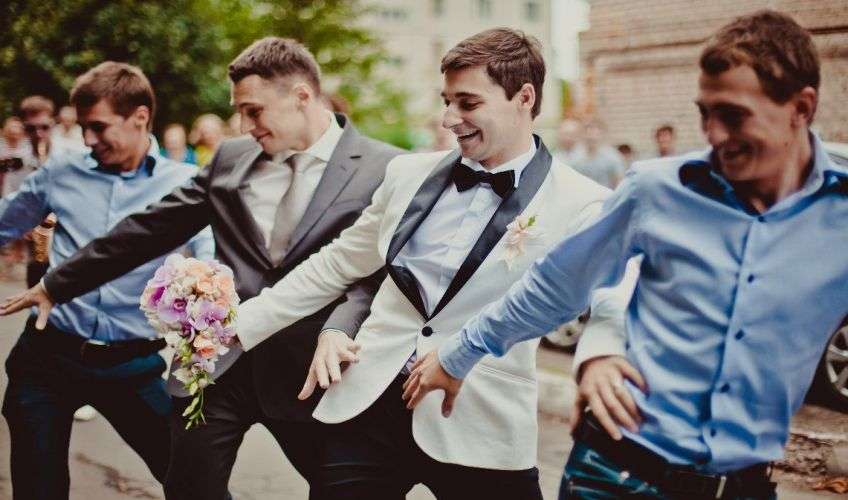 В следующем состязании принимают участие мужчины, желательно покрупнее. Им выдаются женские туфли на каблуках и фата. Ведущий рисует прямые линии и троим мужчинам надо пройтись красивой походкой. Выбывают участники по мере их схождения с линии. Этот конкурс лучше всего проводить после второго стола, когда гости уже расслаблены и проявят инициативу в нём участвовать.