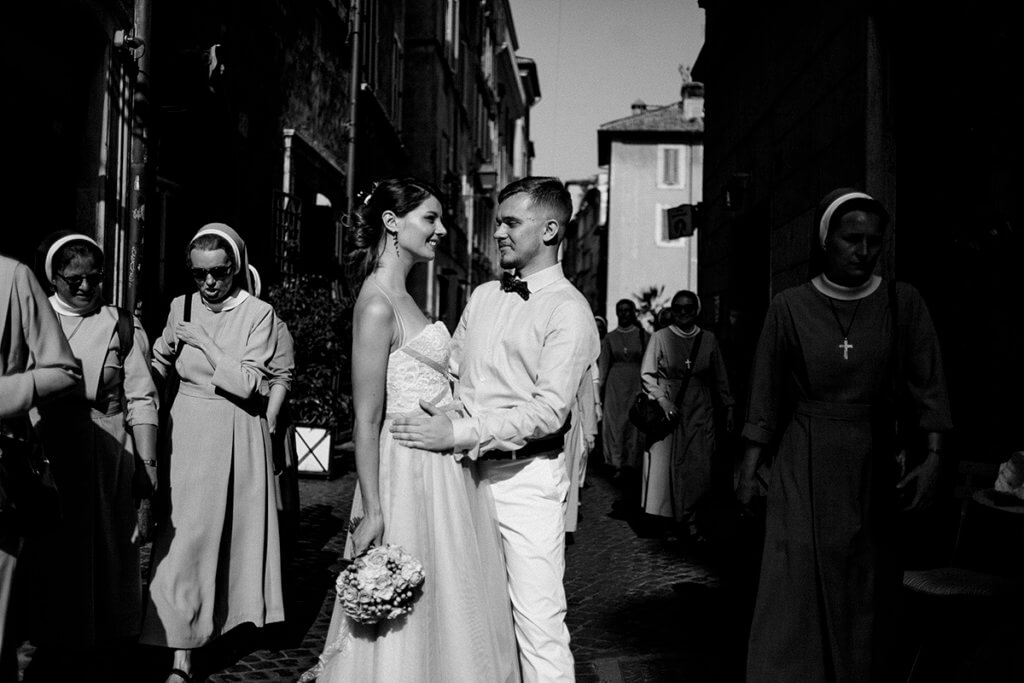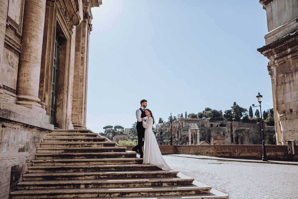Профессионалы позволят новобрачным гулять по улицам, наслаждаясь гостеприимством Италии, выискивая объективом влюбленные взгляды молодоженов, аплодирующих им радушных местных жителей на фоне лучших достопримечательностей выбранного города. У влюбленной пары есть возможность создать уникальную свадебную фотосессию в интерьерах старинных замков Италии. А чтобы снимки были насквозь пропитаны ее духом, молодоженам обязательно следует побывать в Риме, и сделать фото на фоне Колизея, Испанской лестницы, Площади Святого Петра и других знаменитых мест Вечного города.