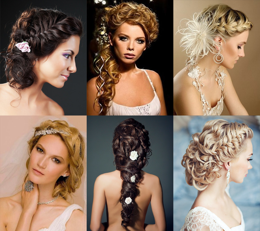 Если ваш наряд богат изысканной отделкой, то следует, лишь слегка завить локоны, чтобы они более естественно спадали на плечи. Сдержанный фасон убранства позволяет выполнять более пышные и сложные укладки. Наиболее популярны сегодня лёгкие крупные локоны или «голливудская» волна. Также многие барышни выбирают гладкие и прямые волосы с интересным расположением пробора.