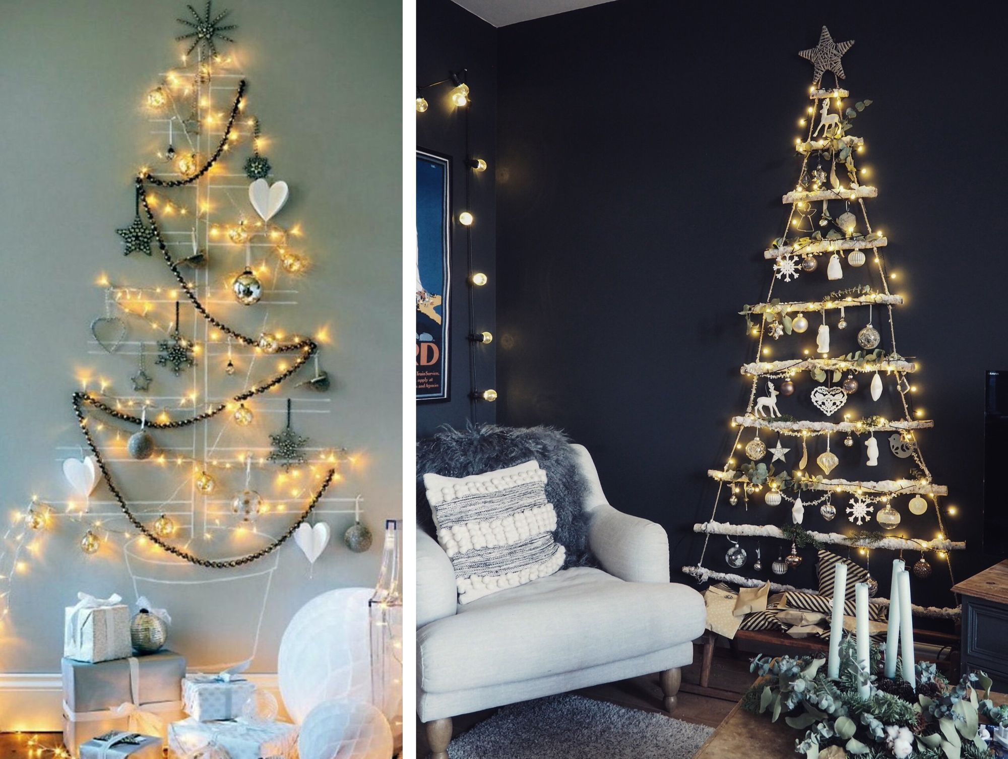 Интересно смотрится висящая елка. Такое украшение дома к Новом году точно удивит всех гостей, а еще она легко заменит живое дерево.