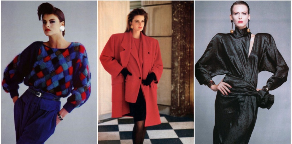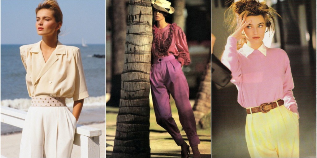 В 80-х романтический стиль занимал не последнее место. И если ты особа утончённая, хорошим решением для выходного комплекта будет шелковая блуза с воланами, рюшами, бантом или стойкой. Одежда с рукавами «летучая мышь» заслуживает особого внимания. Популярный рукав может быть элементом блузки, вязаного свитера или платья.