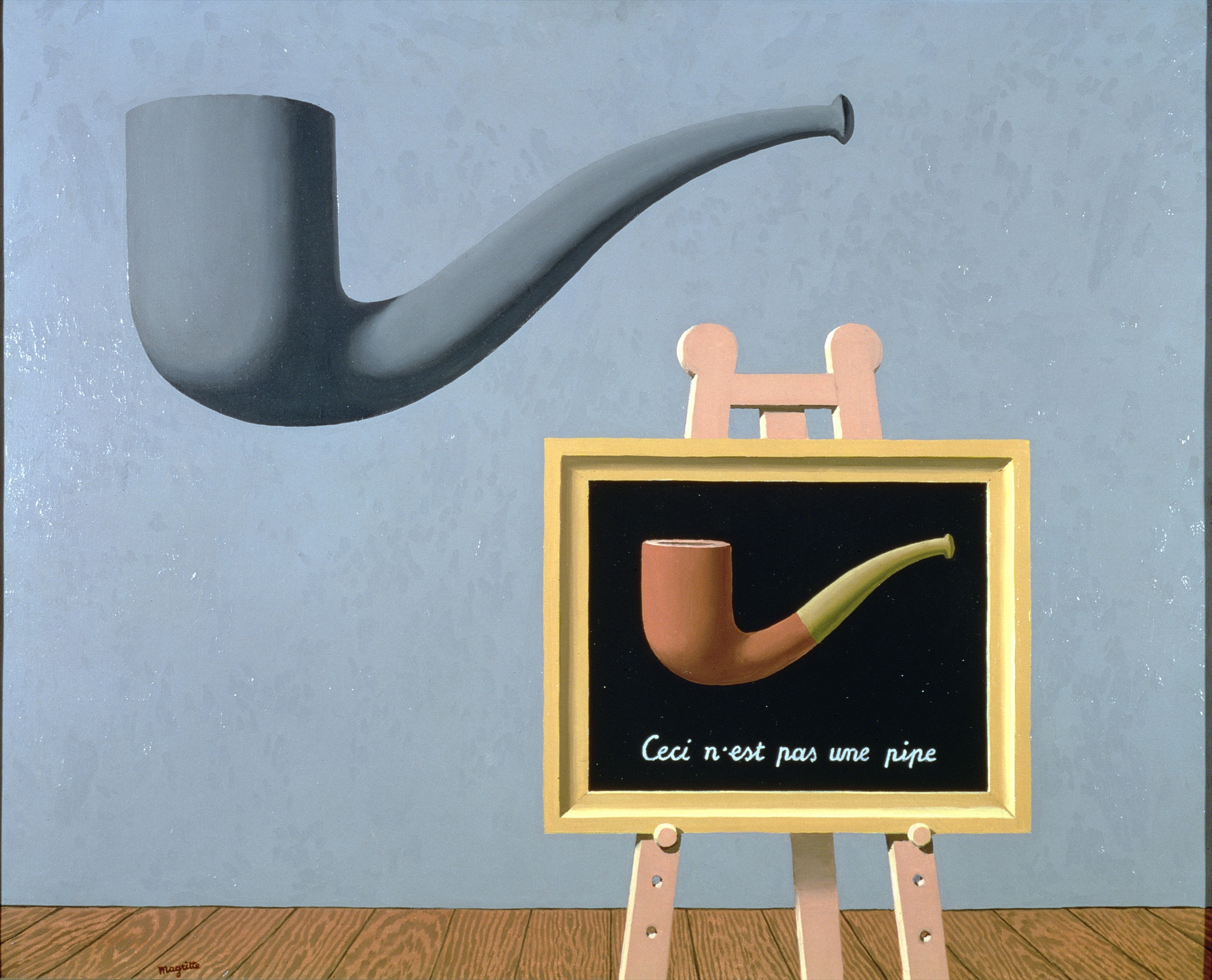 Картина «Вероломство образов», написанная во второй половине 1920-х годов, изображает курительную трубку, кажущуюся чересчур реальной — тонкие линии изгиба, блики и тени. Вероятно, произведение не вызвало бы бурного обсуждения в художественном мире, если бы не одна деталь: выведенная словно детским аккуратным почерком надпись «Ceci n’est pas une pipe», что в переводе с французского означает «Это не трубка».