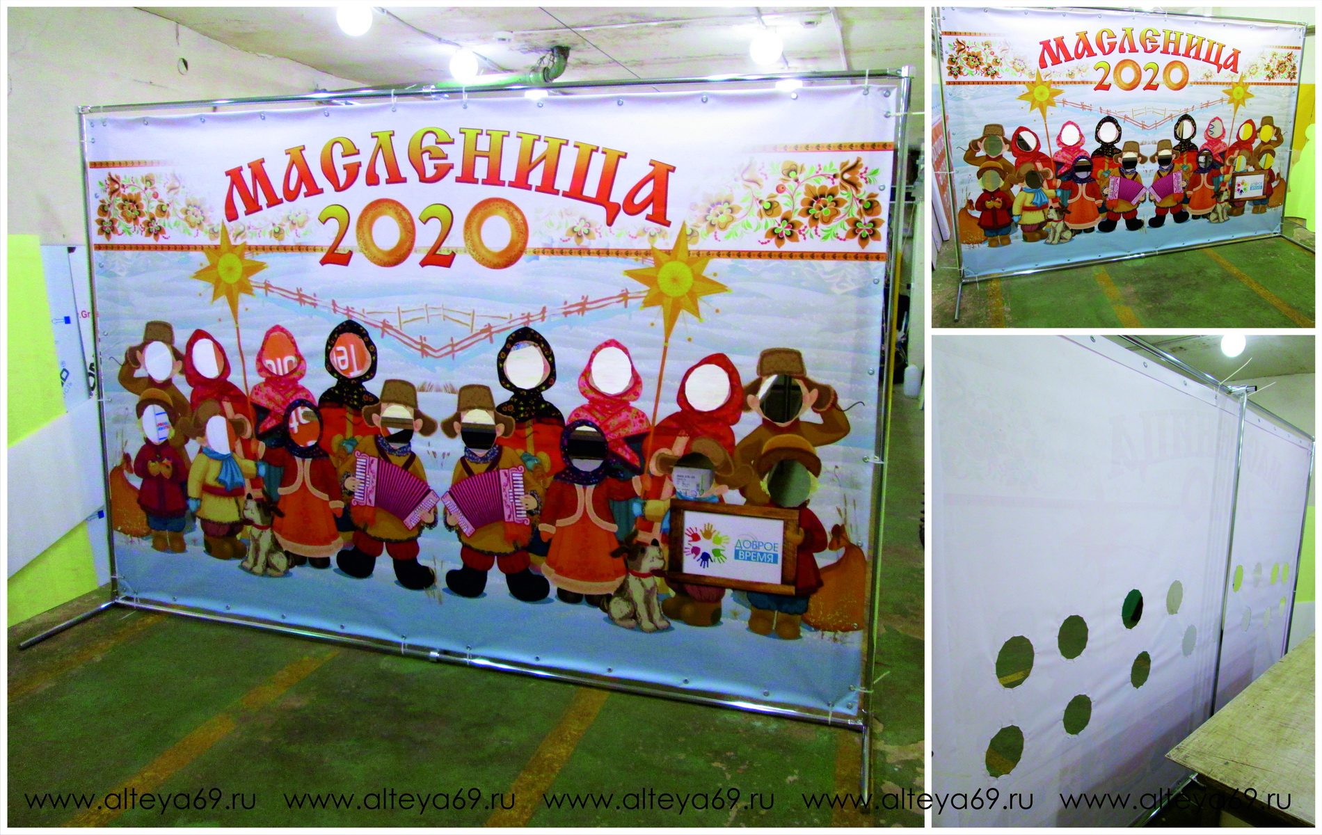 Конкретных исполнителей рекомендовать не буду — в каждом городе есть свои умельцы. В интернете, кроме слова «тантамареска», можно искать «стенд для фотографирования на праздниках».