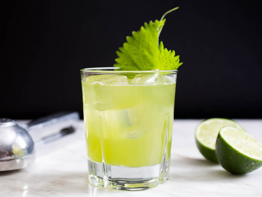 Провести ломтиком лимона по краю бокала и окунуть в зеленую соль. Смешать остальные ингредиенты в шейкере со льдом. Необходимо долго встряхивать шейкер до полного охлаждения. Дважды процедить в стакан с ободком из соли.