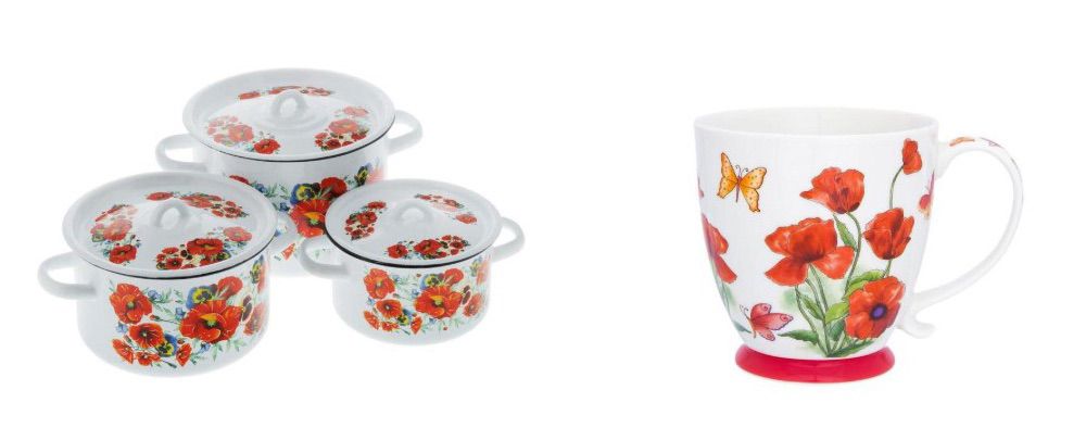 К практичным и полезным подаркам молодым конечно можно отнести посуду с изображением маков.