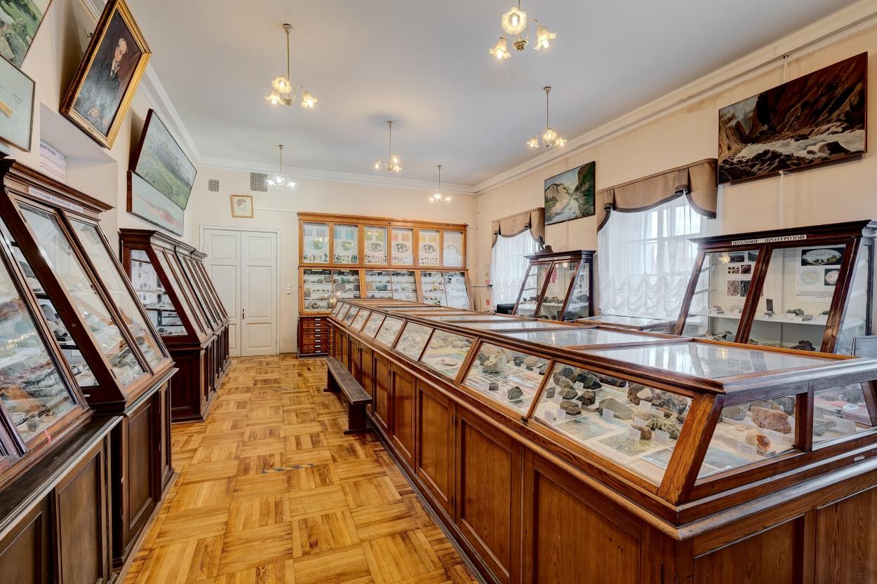 Это один из крупнейших естественно-исторических музеев мира. Музей основан в 1882 г. при Геологическом комитете России, но для посетителей стал доступен только в 1930 году. В фонде хранится более 1 миллиона экспонатов, 80 тысяч минералов, горных пород, руд, ископаемой фауны и флоры. Экспозиция музея делится на три крупных выставочных блока: «Региональная геология», «Полезные ископаемые» и «Монографическая палеонтология». В первом разделе находится уникальное мозаичное панно «Индустрия социализма» 1937 года площадью 26,6 м². До 1987 года оно находилось в Георгиевском зале Эрмитажа.
